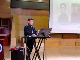 3月22日下午,黄皓华带领红歌合唱团以及器乐组员工为员工党支部、研究生党支部、第45、46期入党积极分子以及1902、1904班全体同学讲授音乐党课“百年党史中的音乐绝响”一幕幕党史画卷,伴着音乐徐徐展开,也让大家在音乐中,与历史对话,再度叩问初心,审视使命和担当。黄皓华书记用音乐艺术的形式展现了具有别样风采的音乐党课,激励在场的同学们不忘初心、牢记使命。