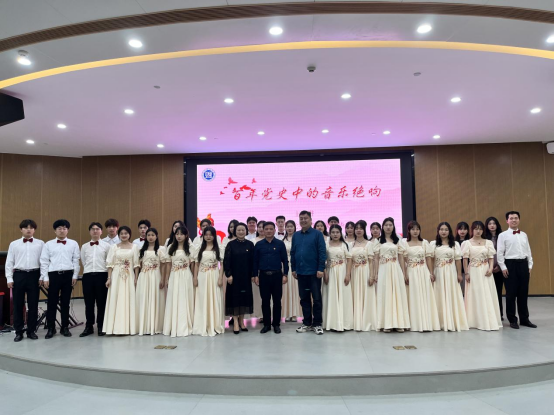 黄皓华老师根据党史主要内容,选取党在数个重要历史时期及事件,用最具代表性的经典音乐作品描绘出一条清晰可见的历史脉络,浓缩展现了中国共产党百年奋斗的光辉历程。众师生通过讲、演、唱、奏结合的方式将红色经典作品诞生的历史背景、创作历程、艺术价值、社会意义娓娓道来,深入浅出地阐述了音乐在中国革命和建设中发挥的重要作用