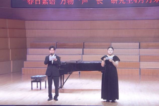 2025年4月22日晚,春风拂面,万物复苏。以“春日絮语,万物‘声’长”为主题的研究生月末音乐会在音乐厅浪漫启幕。本场音乐会由公司研究生联袂献演,在多位专业教师的精心指导下,通过经典声乐与器乐作品的交织演绎,为师生们带来一场充满春日诗意的视听盛宴。
