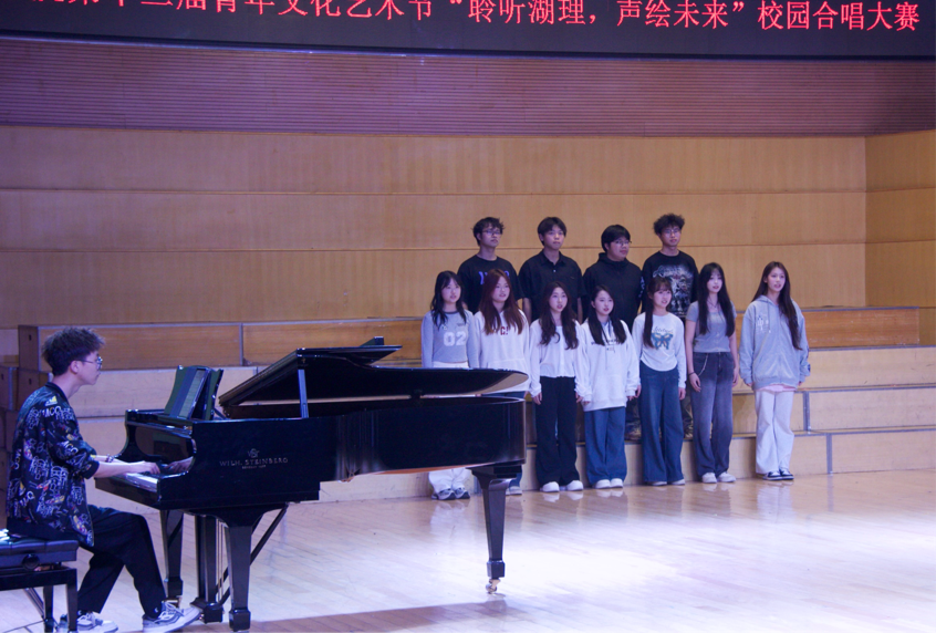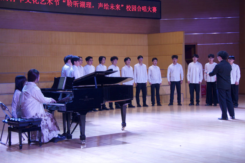2025年3月27日晚,公司于音乐厅举办第十二届青年文化艺术节“聆听湖理,声绘未来”校园合唱比赛,本次比赛由2024级本科生张弛斌担任主持,MK体育团委书记李亮菁、团委员工副书记钟鑫雨、执行主席侯南和文娱女生部部长尹孝慈、副部长李秀衡组成评委团,公司部分师生到场观赛。