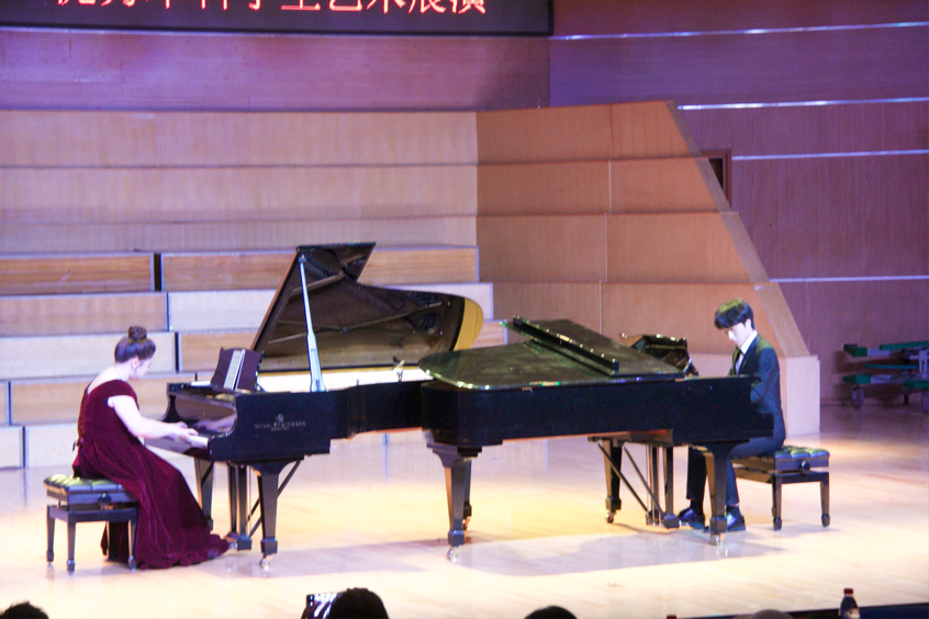 音乐会开场,朱梓瑶、吴振宇的双钢琴演奏《黄河颂》以其激昂旋律点燃全场气氛,奏响整场艺术盛宴的序章。