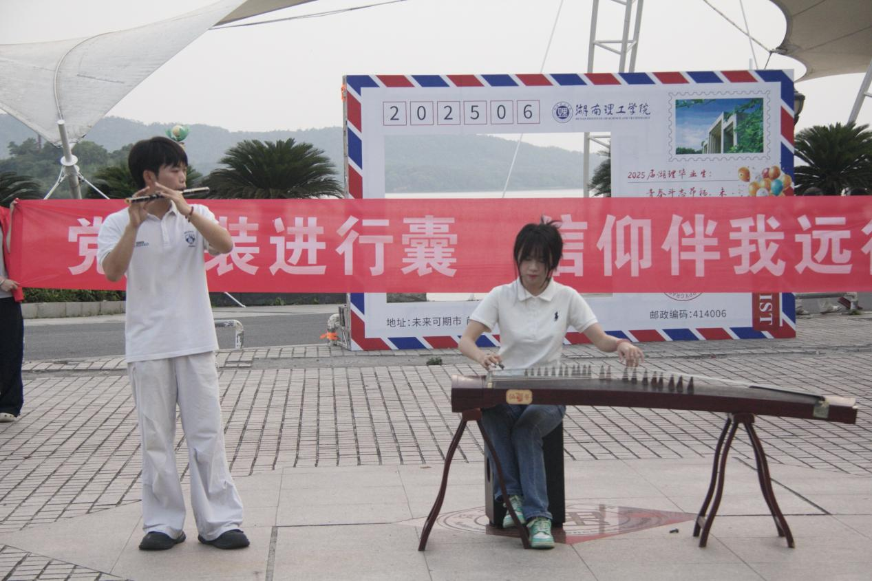 侯南等同学带来的器乐合奏《桃花笑》,通过古筝和笛子的乐器巧妙配合,旋律轻快活泼,音符如灵动的精灵在空气中跳跃,为大家带来了一场听觉盛宴,将活动氛围推向又一个高潮。