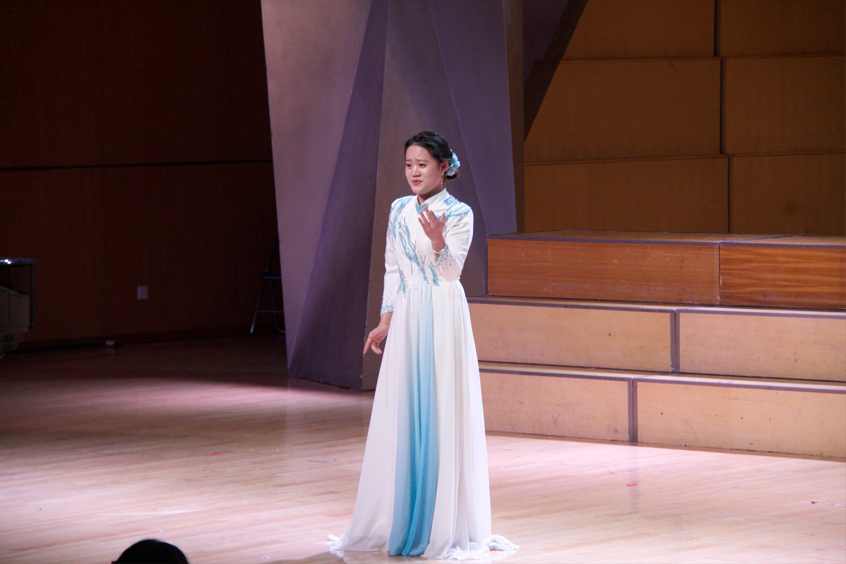 优秀团员个人展示环节,曾彦文独唱《两地曲》,悠悠歌声诉说思念,婉转动人。紧接着,欧海燕带来《千古绝唱》,为经典曲目注入别样精彩,二人出色表现赢得现场观众阵阵掌声。