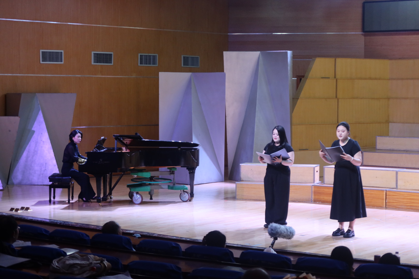 当被问到音乐会圆满落幕时内心最大的感受,以及在指导员工排练和表演过程中印象深刻的成长瞬间,肖雅老师难掩欣慰与感动,她表示:“音乐会的成功举行得益于同学们的共同努力与积极配合,在这个过程中,每个人都得到了锻炼与成长,一个学期的时间,大家从声音无法统一、找不到和声色彩的融合与变化,到能够出色的完成一整台风格各异、形式多样的重唱作品,更惊喜的是,许多作品在原曲的基础上还加入了同学们的二度创作,这样我作为指导教师非常的惊喜与欣慰。这次排演也给我了很多新的教学启示,将帮助我更好的完成之后的重唱教学。”