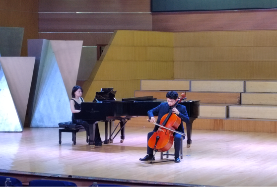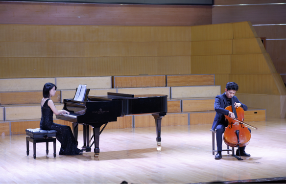 一年一季花开花落,春去夏来蝉鸣不息。6月11日晚,由2023届毕业生蔡杰举办的本科大提琴个人音乐会在音乐厅圆满落幕。本次音乐会的指导教师为王佳子,王碧璇担任艺术指导,公司党委书记王云朋以及部分师生观看。音乐会由2019级员工陶李主持,音乐会特邀嘉宾为文思培、刘伊。本次音乐会共包含八首曲目,音乐会由蔡杰带来的《G大调第一无伴奏组曲前奏曲》拉开帷幕,琴弦拨出舒缓动人的旋律,大提琴优雅又低沉的音色成功捕获了在场听众的心。紧接着,呈现给观众的是由蔡杰与王碧璇默契配合带来的三首精妙绝伦的作品,分别为《小咏叹调》《a小调协奏曲 第一乐章》《e小调大提琴奏鸣曲 第一乐章》,悠扬醇厚的大提琴与轻巧灵动的钢琴完美结合,高水平的演奏技巧展现出音乐独有的魅力,让在场的观众沉醉其中。