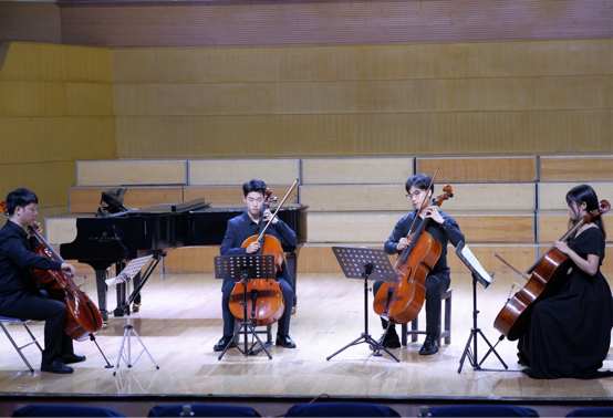 音乐会下半场,音乐演奏的碰撞更为丰富,上场的四位演奏者为听众们呈现了三首经典动听的大提琴重奏曲,优雅与抒情并存,时而恬静,时而宽阔将现场的气氛推向高潮,最后音乐会在一曲缠绵深情的《爱的礼赞》中画上圆满的句号。