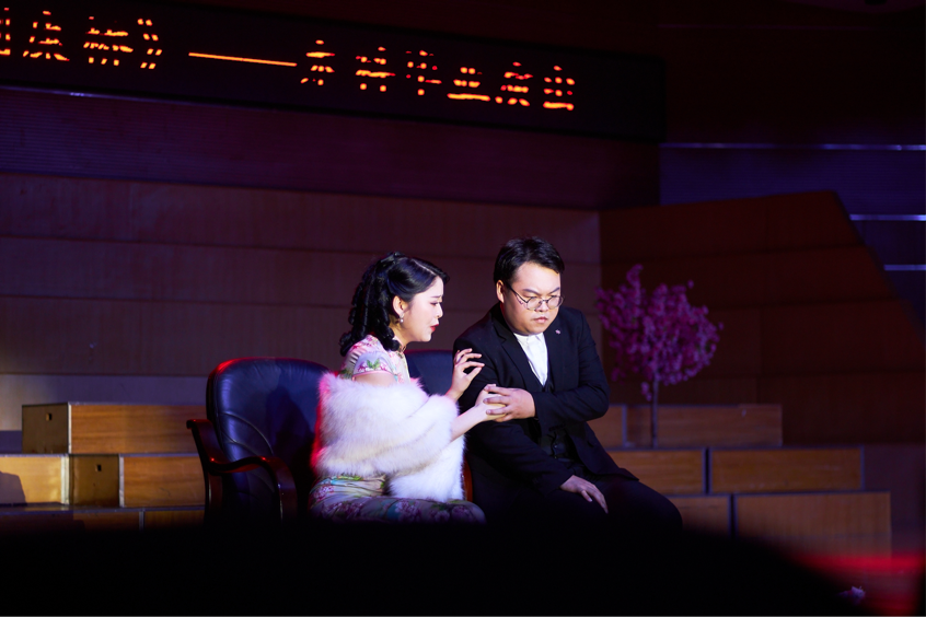 这部歌剧创新地使用室内小乐队进行演奏,将中国故事与西方歌剧完美结合,实为当代中国原创音乐作品的典范。公司的同学们凭借着自身优秀的音乐素养,深入剖析剧本,对角色气质、演唱节奏、表演分寸把握到位,将诗人对康桥的爱恋、往昔生活的憧憬以及眼前的离愁,表现得真挚、浓郁、隽永,让观众享受了一场视听盛宴。