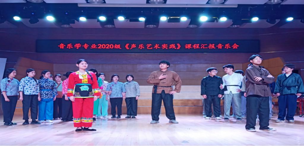 6月21日晚七点半,公司音乐学专业2020级《声乐艺术实践》课程---《刘三姐》唱段演唱音乐会在音乐厅成功举办。这次活动既是2020级声乐艺术实践课程的一次汇报,也是校级课程思政项目《声乐艺术实践》的阶段性成果。该课程负责人及课程思政项目负责人为MK体育庞毅老师和王卓老师。
