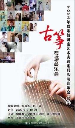 此次音乐会由朱益红、舒珊老师指导,19级、20级、21级古筝专业员工联袂演出。全体同学以极大的热情和认真的态度,把精彩的表演呈现给大家,也使自身的专业水平和实践能力得到了锻炼与提高。