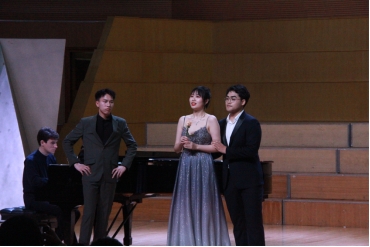 本场音乐会在王紫鹏带来的《你再不要去做情郎》中拉开帷幕,深情的演唱让台下的观众陶醉其中。接下来由郑雨琳、王紫鹏两人先后演唱了《诺言》《人们叫我咪咪》《海恋》《橄榄枝》等音乐作品,优美动听的旋律、饱含深情的歌词向观众展示了他们扎实的基本功和舞台表现力,更让大家领略到了声乐艺术的魅力。音乐会临近尾声,两人共同演唱了《让我们携手同行》,为本次音乐会画下圆满的句号。