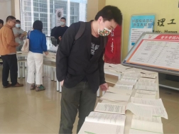 (同学们在参观笔记展)        (黄皓华书记接受记者的采访)