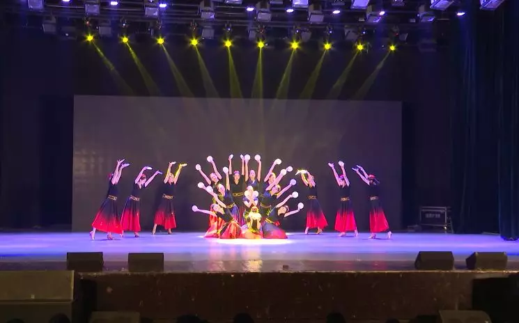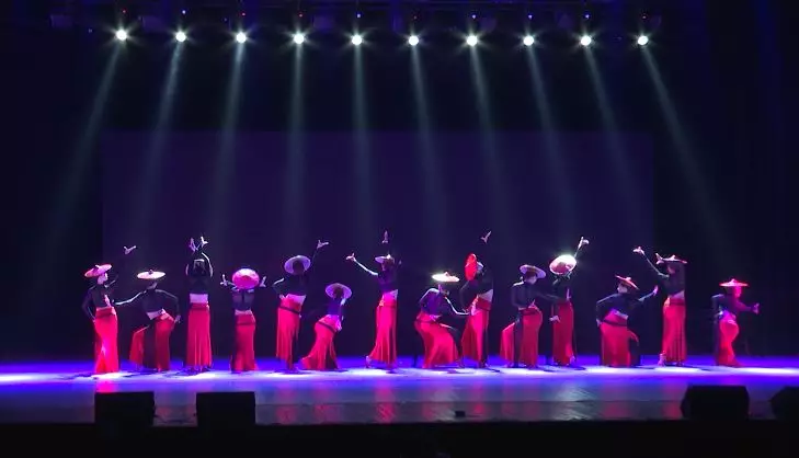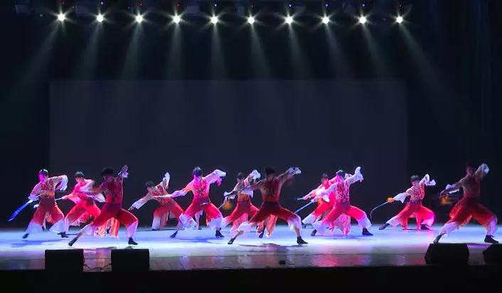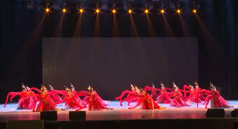 随后,在灯光的照耀下,舞台上一群充满热情的“藏族人民”出现在观众的视野中,激昂的音乐、统一的节奏步伐,展示了舞者强大的气势,台下观众席传来阵阵掌声,晚会气氛被推到了高潮,这支舞象征着她们在老员工活中充满着无限的激情。