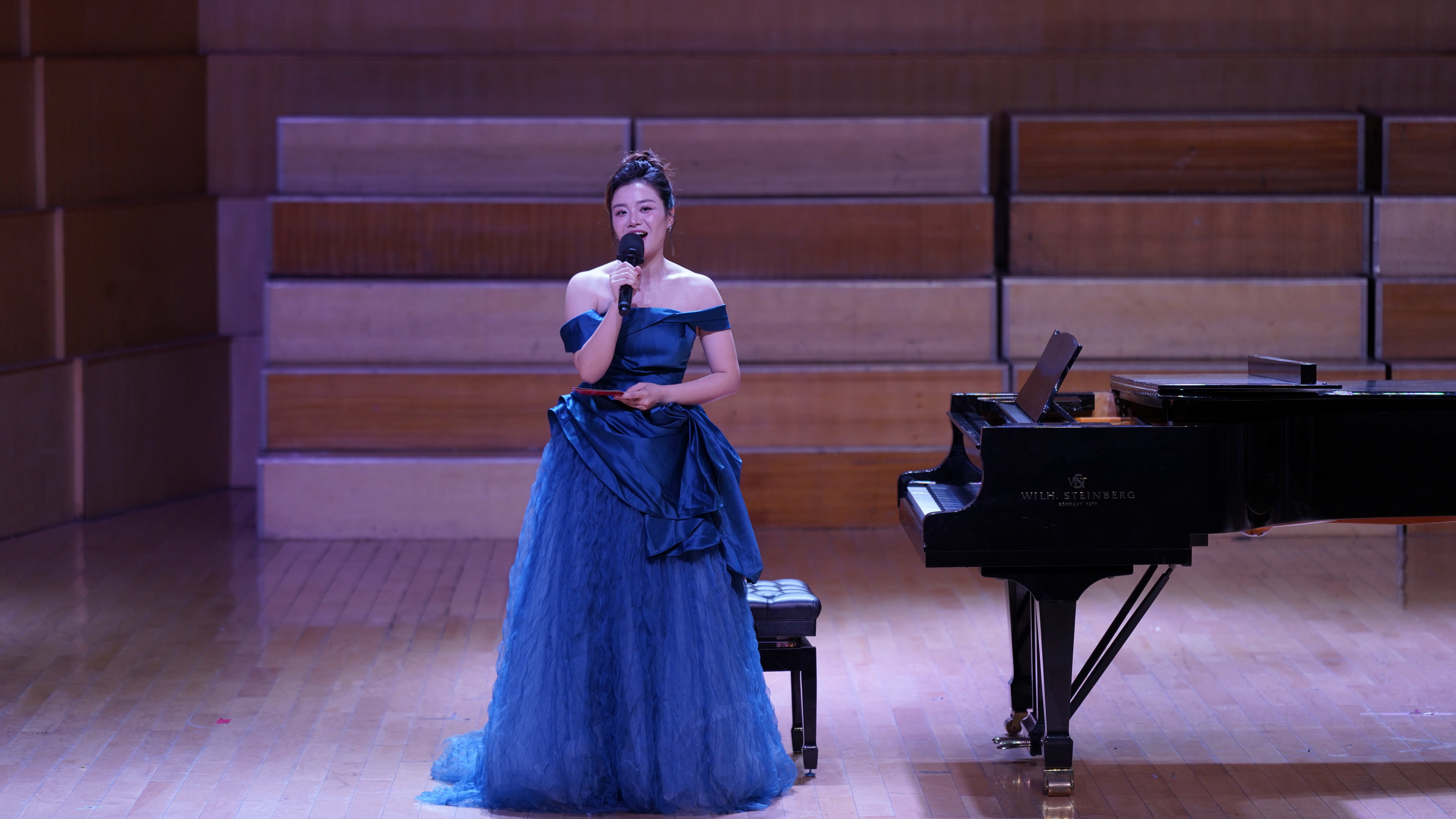 这场音乐会的曲目恰似音乐八音盒,藏尽人间风味。刘禹锡笔下的《竹枝词》经解本康谱曲,在麻润欣女声独唱与钢琴伴奏的珠联璧合中,精准再现了古典诗词的韵律美感,更赋予其浪漫的音乐性表达。随后,麻润欣以细腻婉转的歌喉倾情演绎土家族民歌《马桑树儿搭灯台》,深情诉说着土家族儿女坚贞不渝的爱情故事。紧接着,作曲家白栋梁为宋代蒋捷词作《虞美人·听雨》谱写的艺术歌曲,由麻润欣独唱呈现,其歌声生动刻画了词人在人生不同阶段于阁楼听雨时的心境变迁与深刻感悟。