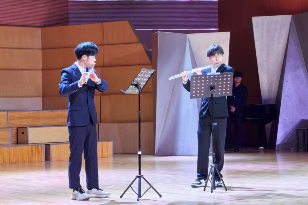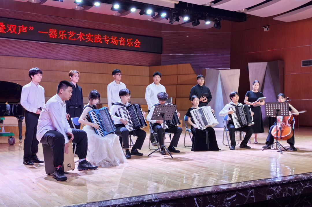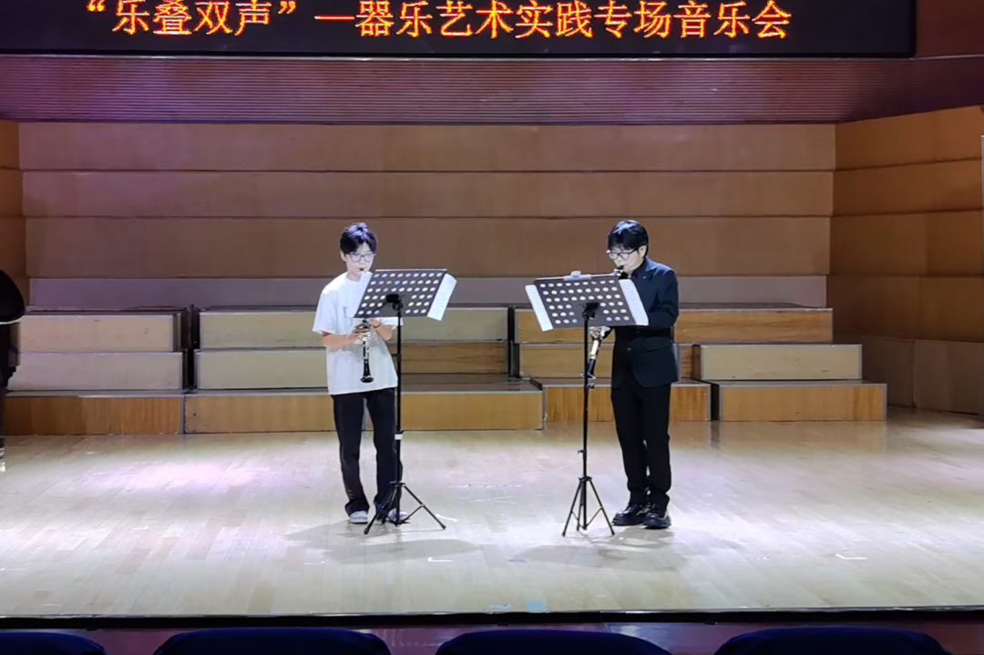 2025年6月17日下午,公司在音乐厅成功举办“乐叠双声”器乐艺术实践专场音乐会。本次音乐会由2022级本科生丁培和2023级本科生吴限担任主持,通过演绎14部横跨中西、融汇古今的经典作品,带领观众穿越时空的长廊,领略艺术的魅力。