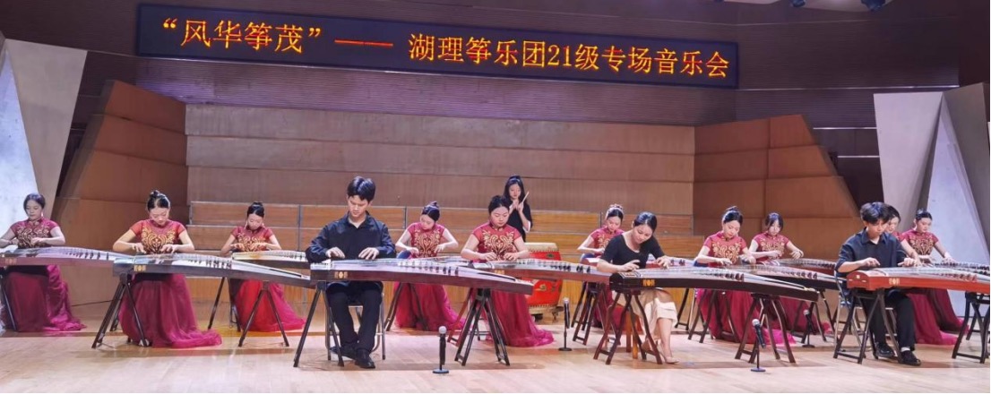 “湖理筝乐团”于2021年MK体育古筝专任教师,舒珊老师策划并组建。筝乐团成员由MK体育古筝主修的本科生组成,乐团始终坚持“至善穷理”的校训,秉持着传承与创新相结合的理念,不断探索和拓展古筝艺术的表现形式和传播渠道。致力于将古筝这一传统民族乐器与现代音乐元素相结合,打造出具有时代特色的艺术作品,为传承和弘扬中华优秀传统文化贡献自己的力量。乐团成员均具备扎实的音乐功底和丰富的演出经验。在乐团指导老师——舒珊老师的悉心指导下,成员们不断锤炼技艺,形成了独特的演奏风格和团队凝聚力。他们不仅擅长演奏传统经典的曲目如《河南八板》、《柳青娘》等,还能紧随时代步伐,将现代元素融入古筝表演中,从而演奏出别具一格的作品。