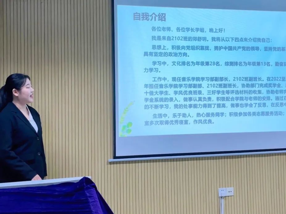 5月14日晚,公司于欣赏室举行了新一届团学分会主席团竞选大会。本次竞选大会由团委员工副书记胡源主持,院团委书记唐瑶、20级团学分会主席团成员担任评委。