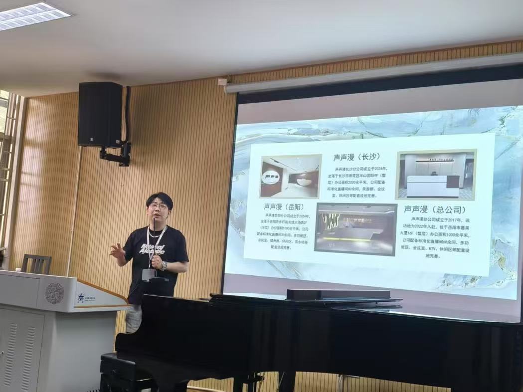 2025年5月13日下午,声声漫传媒公司在公司举办语音主播专场招聘会,公司主管潘明先生到MK体育欣赏室进行了企业招聘宣讲,公司党委副书记蔡奕老师及60余名2025届毕业生参加了招聘会。宣讲会上,潘先生介绍了公司基本情况、对公司所属平台、公司需求的岗位进行了讲解。对职员的个人职业发展规划也进行解释。宣讲会最后,部分同学针对薪资待遇、员工福利等提出了几个问题,负责人进行了耐心解答。