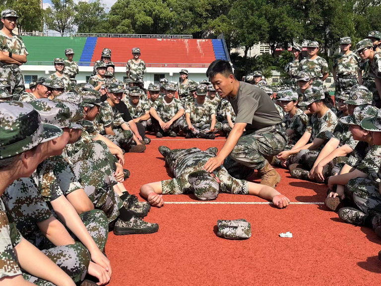 走进军训现场,一阵阵激昂的声音响彻操场,同学们精神抖擞,步伐坚定,在教官的统一指挥下,正紧张有序地投入军事训练。训练场上,同学们不怕苦、不怕累,眼神里充满着对新学期的憧憬与对军训生活的坚定与自信。站如松、坐如钟。教官们严谨教学,认真纠正动作,员工们也不肯放低标准,比动作、拼毅力,昂首挺胸、挥臂迈向前,尽显青春风采。