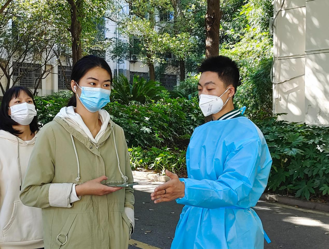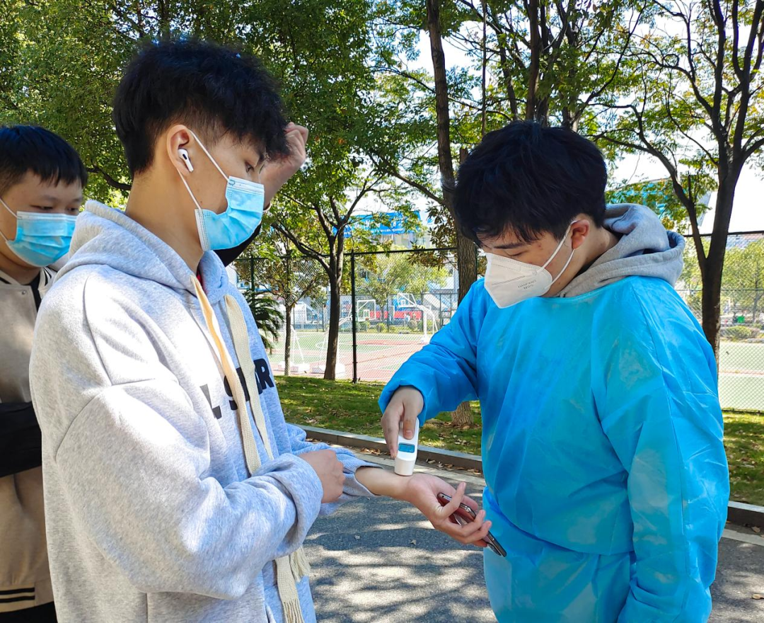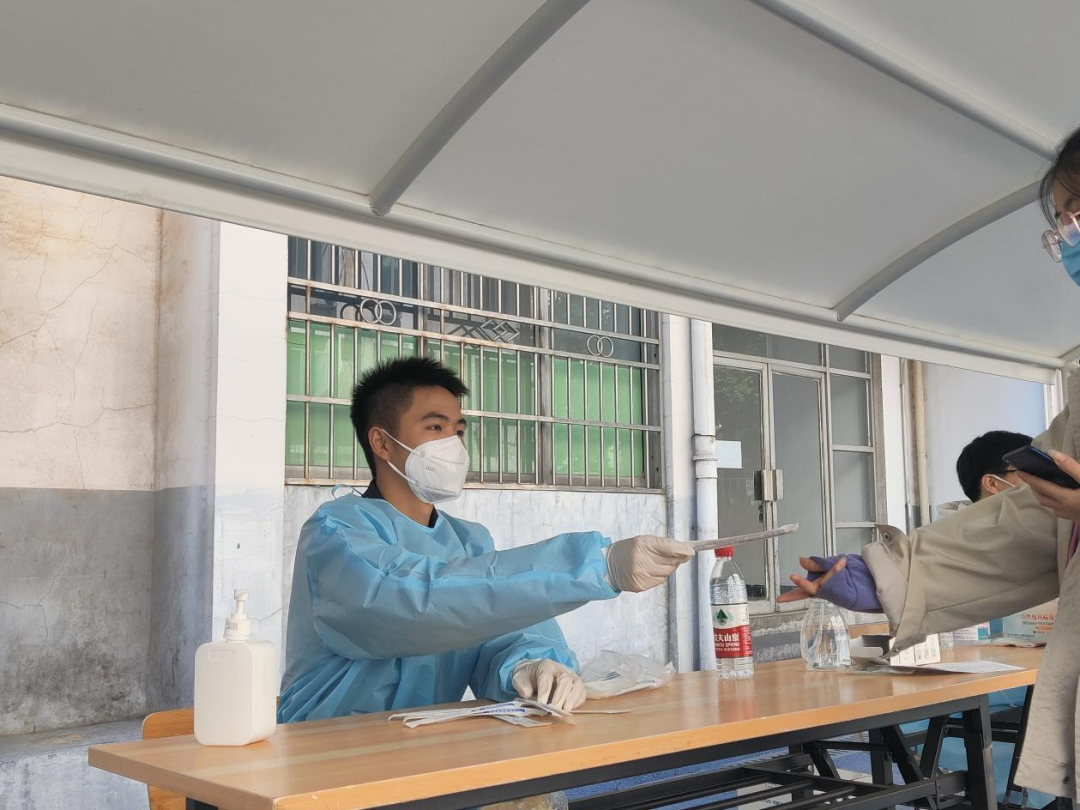 今年20出头的小伙子们在疫情突然来到我们身边时,毅然披上防护服,在园区核酸检测登记及卡点值守服务,扫核酸检测码、登记、测量体温、消杀、卡点放行,一丝不苟。