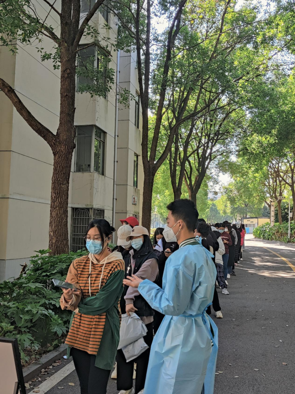 在mksport体育二号园区核酸检测点,员工正有序地进行核酸检测,身穿防护服的志愿者维持现场秩序,认真地进行信息录入,贴心志愿者不断温馨提醒做核酸的同学们“请保持1米间隔”“请扫场所码”“测完核酸立即离开切勿停留”,所有环节衔接流畅、有条不紊。