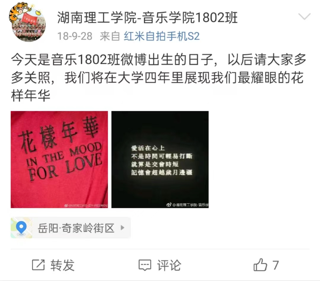 2018年9月28日,1802班发了第一条班级微博,现在仍是你们的花样年华,你们做好准备在社会上展现你的十八般武艺了吗?