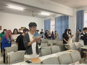 “这是一声砸向旧世界的锤头的撞击,和着十月革命惊天霹雳,从上海望志路到南湖的红船的发力,锻造出一个民族驶向复兴彼岸的轨迹……”5月9日下午,从4101教室穿出朗朗读书声,朱海的《信念永恒》,2104班的同学们在这里用来抒发他们真挚的爱国情怀。