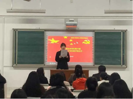 公司业余党校第44期入党积极分子培训班于2021年4月9日于4105教室正式开班,公司党委副书记蔡奕,研究生党支部书记方从戎、团委书记邹敏、团委副书记葛传才以及本次培训班全体学员参加,会议由党委组织员刘姣花主持。