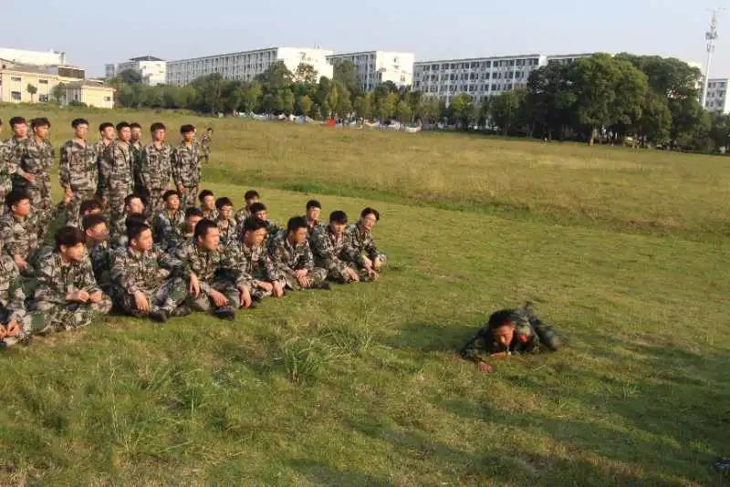 如此良好的天气怎能不进行战术训练呢?下午教官带领大家来到了阳光大草坪开始了匍匐前进的训练。一向不怕吃苦的大家随着教官的一声令下,扑倒在草丛中开始爬行前进,土腥味从四面八方灌进嘴里,阳光洒在大家身上,似乎又回到了最原始的时期,与大自然进行最亲密接触的时期。