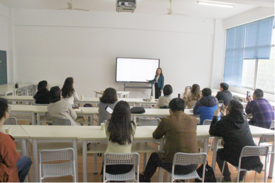 薛静经理以省级一流精品课程《忧乐文化上心头——地方优秀传统文化实践教育》的建设为范例,向公司教师介绍了精品课程申报表格的填写注意事项、课堂视频录制的细节及程式、教学日历与教案的撰写规范与要点,明确指出教学课程设计要从理论和实践两方面出发,突出课程的难点与重点,并实现教书与育人的双重目的,特别提醒视频制作时要考虑场地和时间的可行性、合理性,并就专业素材获取途径和公司教师进行了深入交流。