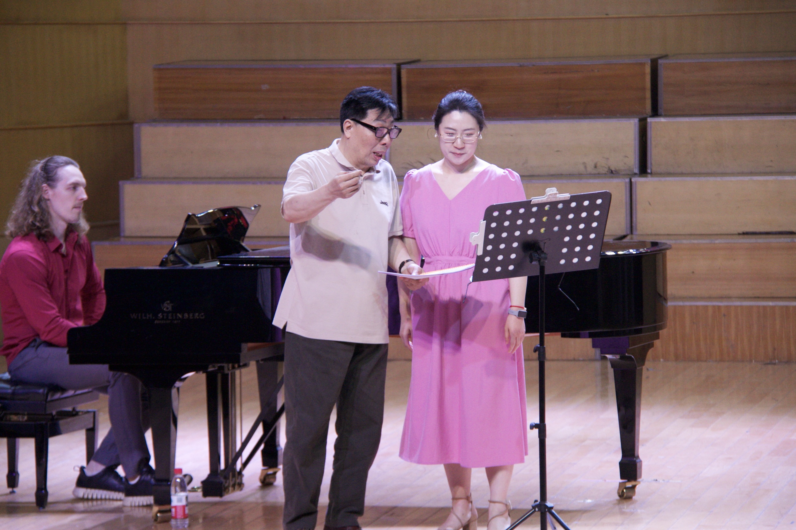 赵小平教授从歌唱发声原理切入,系统阐述声乐作品的艺术处理逻辑。他结合多年舞台表演与声乐教学经验,重点剖析音乐思想、呼吸控制、吐字规范与舞台表演的协同关系,通过演唱示范,揭示技术细节与情感表达的深层联系。针对“重技巧轻情感”的认知误区,他强调歌者需平衡声音技巧与艺术想象,将生活体验提炼为高于现实的情感表达。