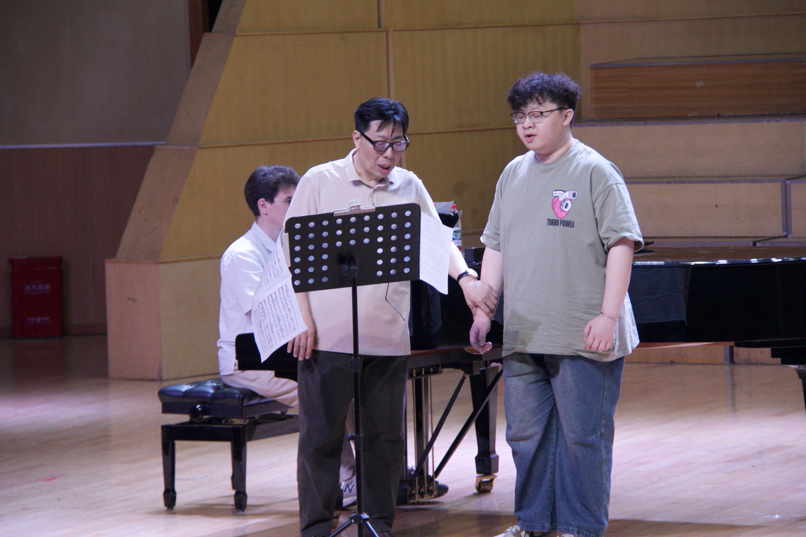 在互动环节中,赵小平教授对公司青年声乐教师与声乐表演员工进行一对一指导。针对美声唱法演员,他纠正意大利语歌词的咬字偏差;指导民族唱法演员时,则强调方言韵律与科学发声的结合。赵教授反复叮嘱“基本功决定艺术高度”,建议通过诗词朗诵强化语感,利用哼鸣练习打磨声音连贯性。