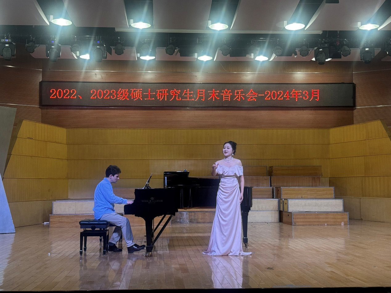 随后是声乐表演的环节,研究生们用饱含情感的声音演绎了多首动人心弦的歌曲。从民族到美声,从悲伤到欢乐,每一首歌曲都展现了表演者们的音乐功底和表现力。观众们在歌声中感受到了无限的情感共鸣,掌声不断,现场气氛热烈而感人。