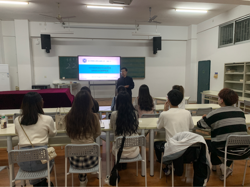2022年11月10日晚上七点,副经理庞毅为2022级研究生在4202教室开展了专业学习教育讲座,详细讲解了《2022版艺术硕士公司产品方案及专业实践实施细则解读》,这是公司新生入学教育系列讲座中重要的讲座之一。