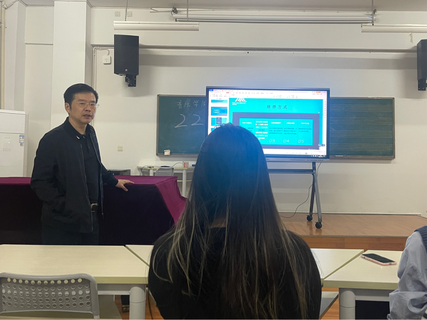讲座中,庞院为同学们详细讲解了艺术硕士专业学位音乐表演类和音乐教育方向公司产品方案,包括培养目标、学习方式、课程设置、毕业考核等内容。接着庞院十分细致的解读了艺术硕士研究生各个方向专业实践实施细则,并结合了这几年研究生的实践现状进行讲解,深入浅出,通俗易懂。