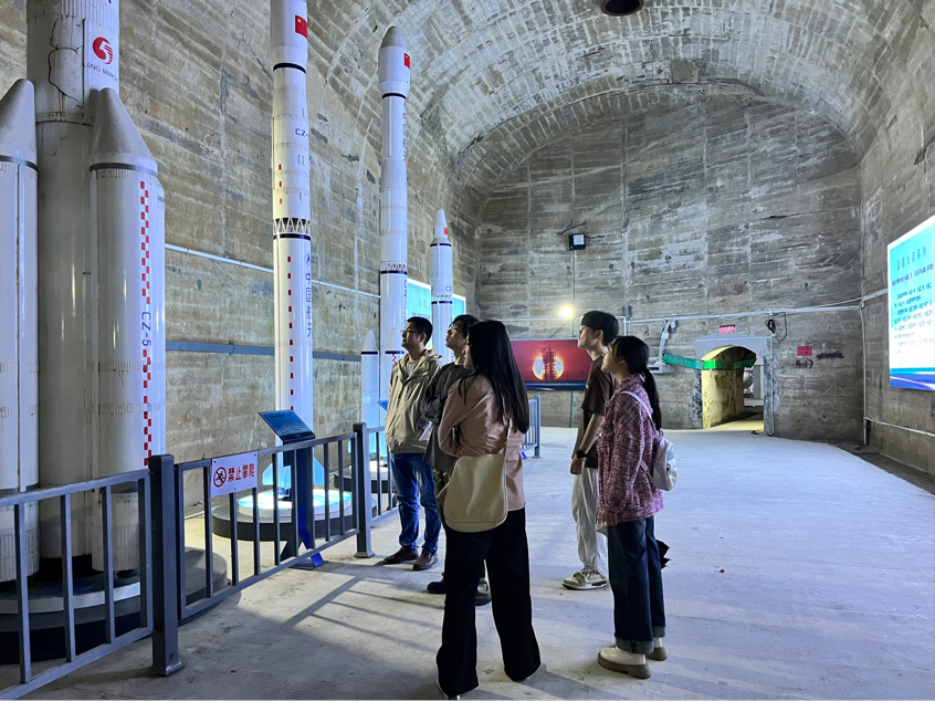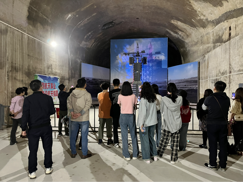 公司师生跟随导游的脚步进入洞窟,认真聆听6501工程建设的历史背景、分区构造和建工解密,仔细阅观图、文、物组合结构的国防教育陈列展览,通过天宫二号VR影院等互动体验项目,真实地感受航空航天科技的魅力,深入了解了中国国防和航天事业的发展历程和辉煌成就。
