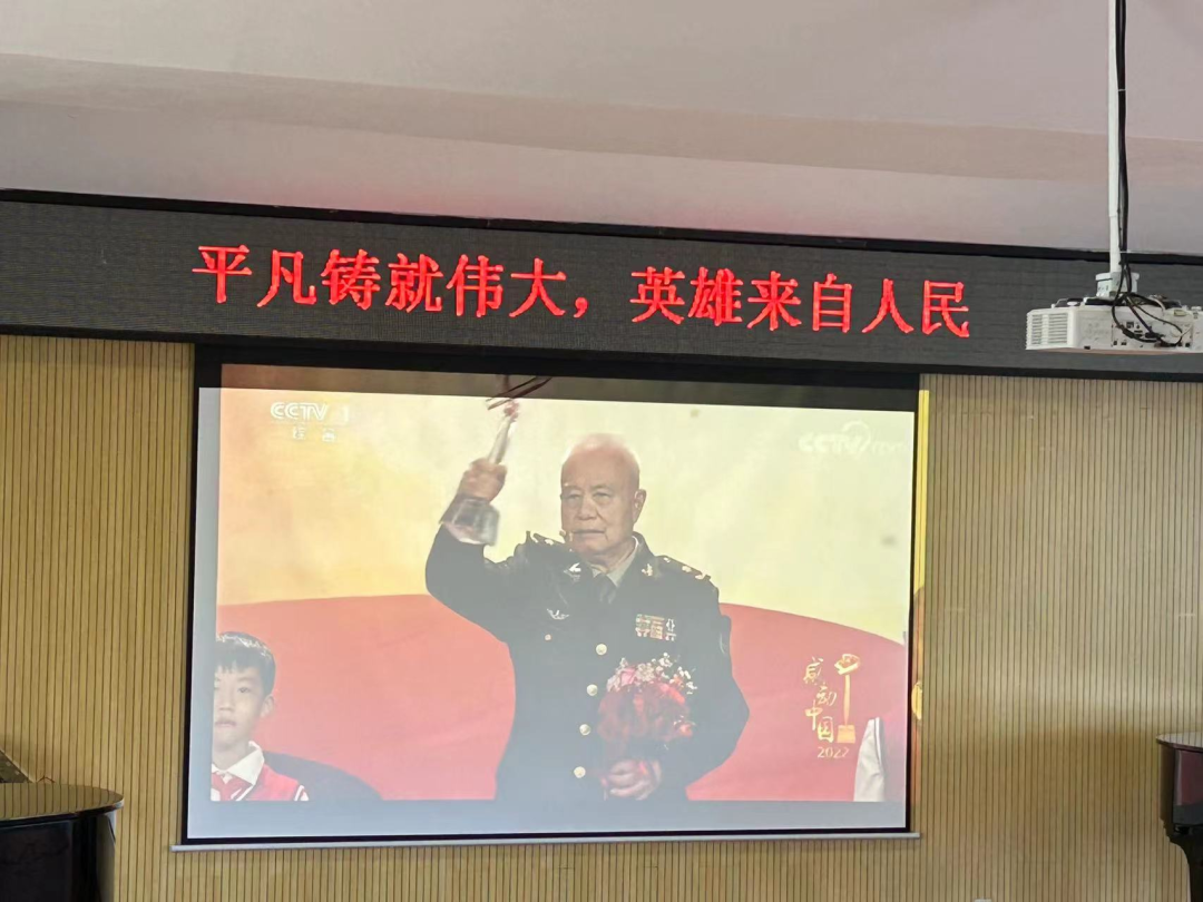 活动开始,全体师生党员观看了2022年度“感动中国十大人物”影片,片中讲述了十大人物平凡而又伟大的故事。有“了却家国天下事,一头白发终不悔”的钱七虎,有“紫了糯米撑了荷包,不怕弯多山又高”的杨宁;有“一辈子都在磨砺国家的剑与盾”的沈忠芳;有“把山村的孩子送上冬奥会舞台”的邓小岚……