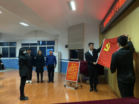 宣誓仪式正式开始,由研究生党支部书记方从戎领誓,党员同志们面向党旗,举起右手,齐肩握拳,庄严宣誓。现场铿锵有力的宣誓声,是他们对党的承诺,也是他们发自内心的,对党的忠诚和决心。
