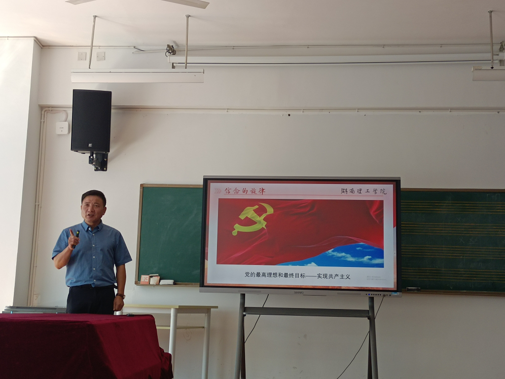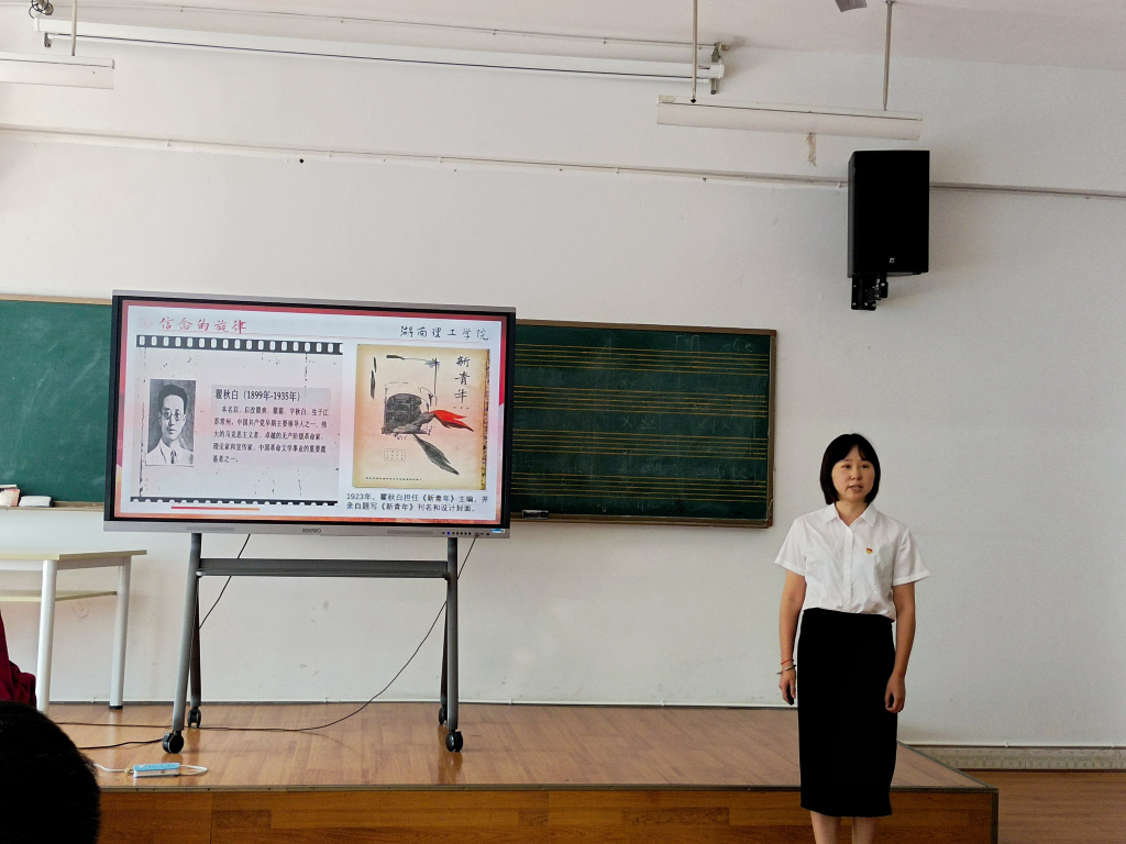 研究生党支部书记方从戎以“信念的旋律”为主题,以《国际歌》为线索进行党课宣讲,阐述了中国共产党引领号召广大人民群众通过革命走向光明。《国际歌》是革命的宣言,是战斗的号角,鼓舞我们为实现共产主义而奋斗终身,更激励着无数中国共产党人坚定信仰、与时俱进,为实现人民群众的美好生活继续奋斗。在实现两个一百年奋斗目标的伟大征程中,新时代中国共产党和中国人民将牢记初心使命,共同团结奋斗,继续谱写中华民族伟大复兴进程中的激昂乐章!