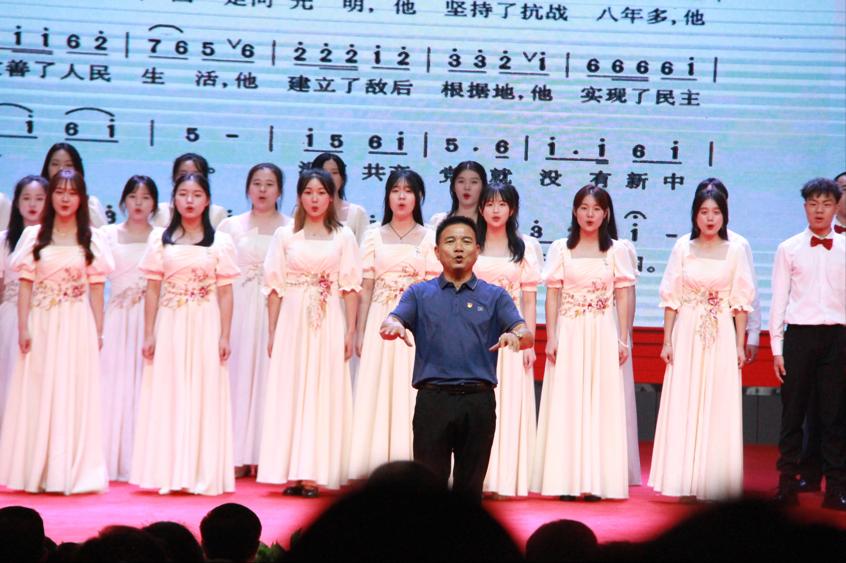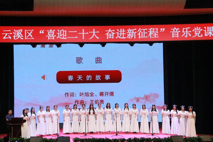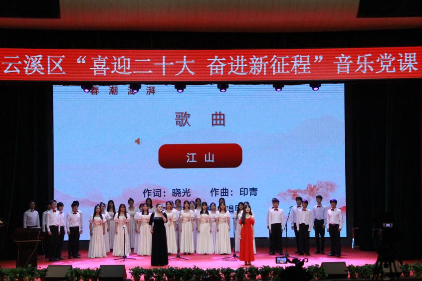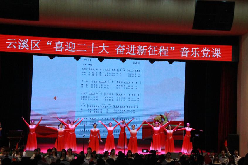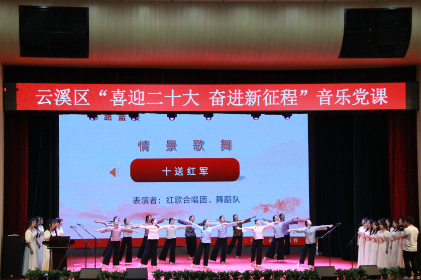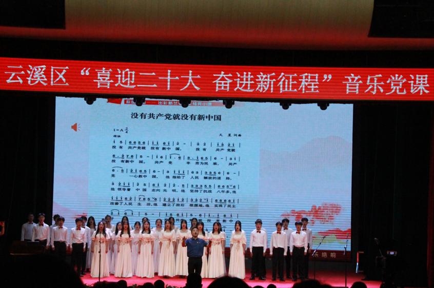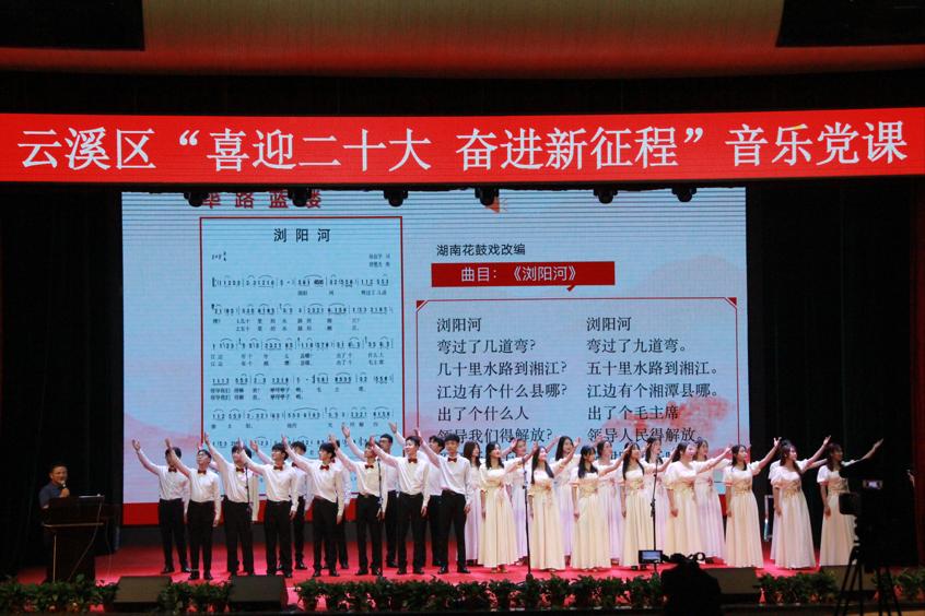 紧接着由公司党委书记黄皓华开始授课。本次音乐党课黄皓华书记将中国共产党党史与中国近代音乐史两条脉络交织融合为主线,讲述并充分展现中国共产党带领全国人民在中国革命、建设、改革以及伟大中国梦的历史进程中取得的重大成就。一首歌伴舞《我和我的祖国》拉开了云溪区“喜迎二十大 奋进新征程”音乐党课的序幕。
