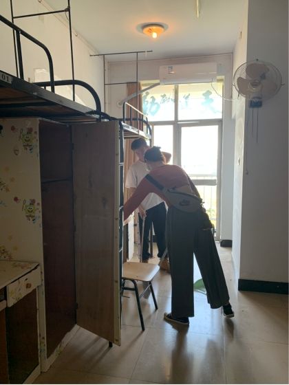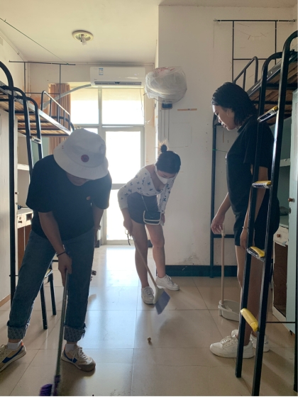早在9月10日下午,员工党员们就前往新生寝室打扫卫生,所有人通力协作、明确分工,为新生的到来做好了充足准备。